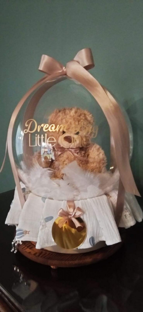 A thoughtful keepsake designed to celebrate life’s sweetest moments. This elegant clear Bobo balloon is paired with a medium brown teddy bear and a soft 100% cotton muslin baby blanket. A charming and practical gift, perfect for baby showers, newborn celebrations, or a unique “welcome home” surprise.
