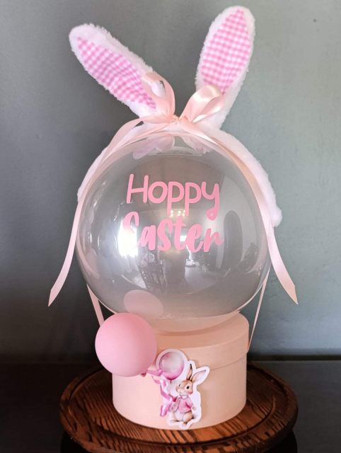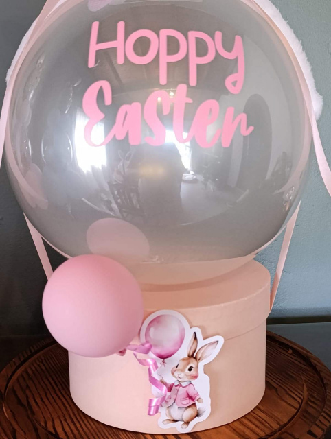 Celebrate Easter with our charming Easter Bunny Balloon Gift Box. Featuring a personalised balloon with adorable bunny ears, satin ribbon detailing, and a premium hat box base, this design makes a beautiful seasonal gift or festive decoration. Perfect for Easter surprises, egg hunts, or thoughtful gifting for little ones and loved ones.