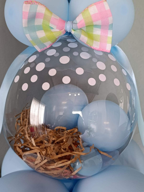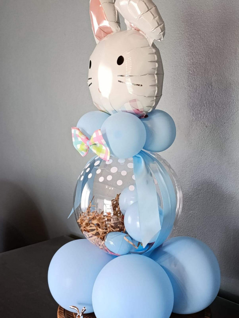 Our Easter Bunny Balloon Surprise Stack is a playful and eye-catching Easter gift. Featuring an adorable bunny balloon topper, pastel balloon accents, and a clear bubble balloon filled with Easter treats and surprises. Finished with soft ribbons and a pastel balloon base, this design makes a fun Easter morning surprise or festive decoration for little ones.