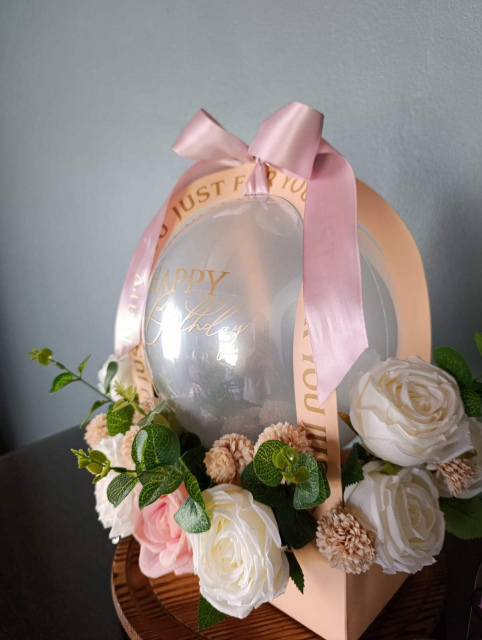 Latex Balloon in Gift Box with Flower Arrangement – Elegant Birthday Balloon Gift