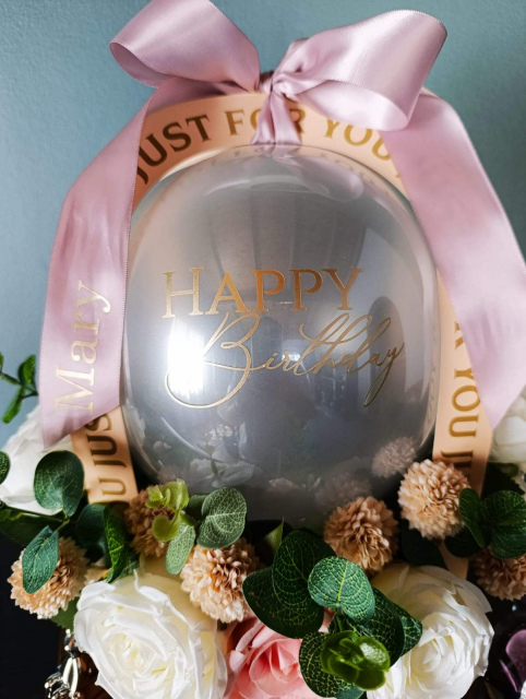 A stylish and thoughtful gift for any occasion. This vibrant latex balloon is beautifully presented in a chic gift box carrier, accented with a delicate artificial flower arrangement and a coordinating bow. Perfect as a birthday surprise, anniversary gift, or to brighten someone’s day with a bespoke balloon creation.