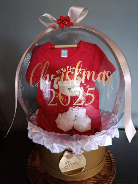 Celebrate a precious milestone with our My First Christmas Outfit Bobo Balloon, beautifully styled with soft white baby booties, a luxurious silk-trim finish, and an elegant bow. Thoughtfully designed to mark baby’s very first festive season, this keepsake balloon gift is perfect for newborn celebrations, Christmas gifting, or festive photoshoots.